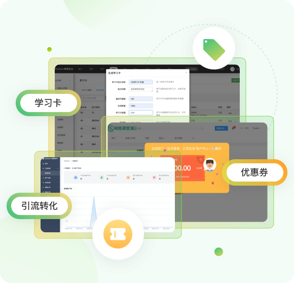 EduSoho 教育云 + AI 基座 拼團、秒殺、兌換碼、學習卡、公開課,多樣化的營銷工具,幫助培訓機構實現(xiàn)全渠道引流及轉(zhuǎn)化。